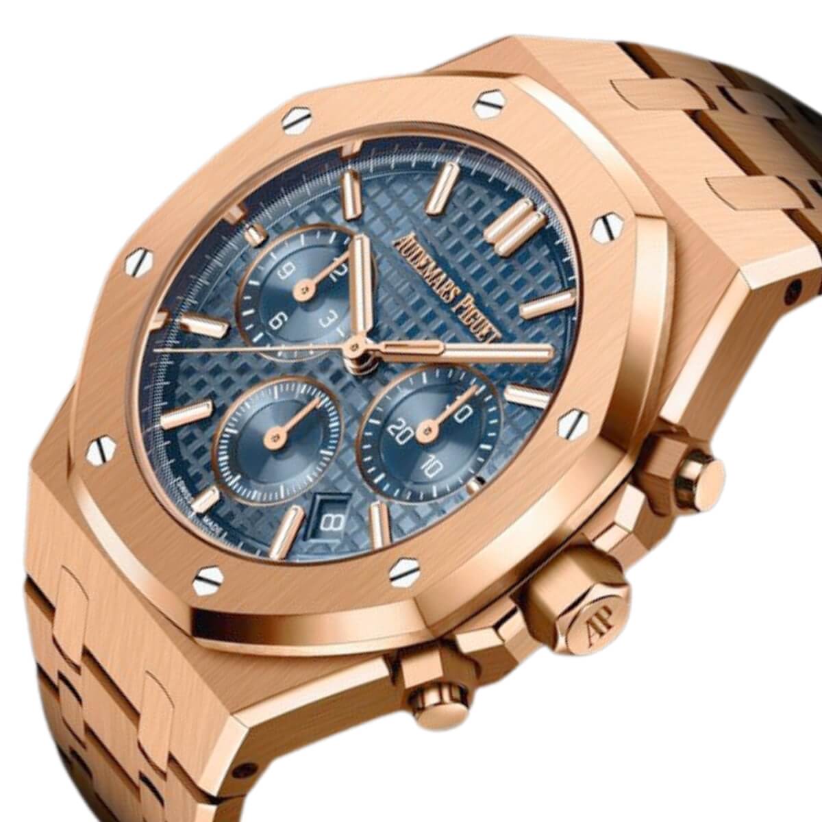 Elevate your collection with the Audemars Piguet Royal Oak Self-Winding Chronograph 26240OR.OO.1320OR.05, a masterpiece designed for those with a taste for the elite. This best-seller, available at competitive Audemars Piguet watch prices in Dubai, is a true work of art with its blue dial, impressive elegance, and flawless craftsmanship.