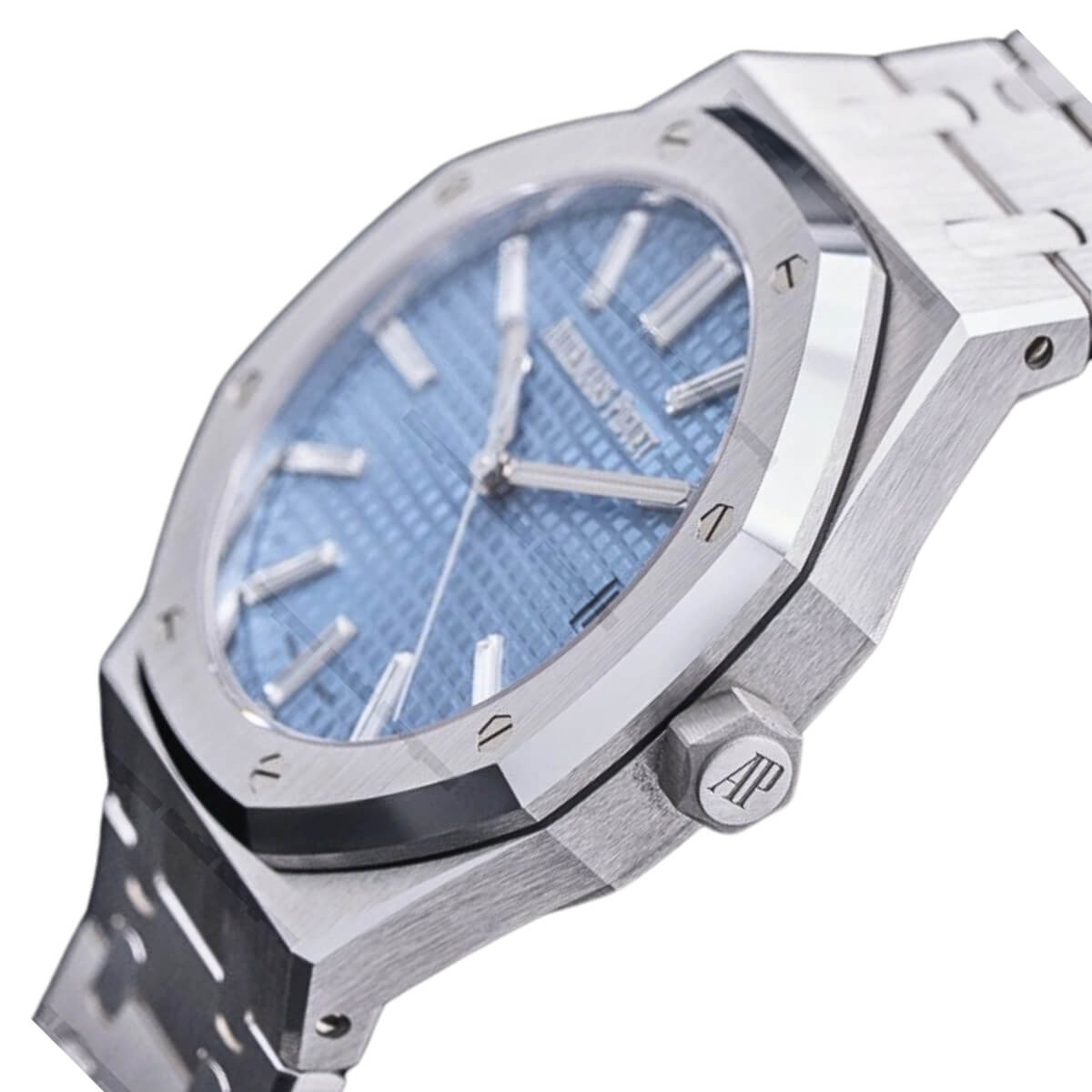 Discover the most exquisite timepiece experience with the Royal Oak Self-Winding 15550ST by Audemars Piguet. OO. 1356ST. 8, a very elaborate and superb creation, especially for those elite enthusiasts who appreciate the finest in life. The blue dial of this watch is captivating, glimmering with light at every movement, adding a touch of elegance and class. Explore this and other Audemars Piguet watches to find your perfect match.